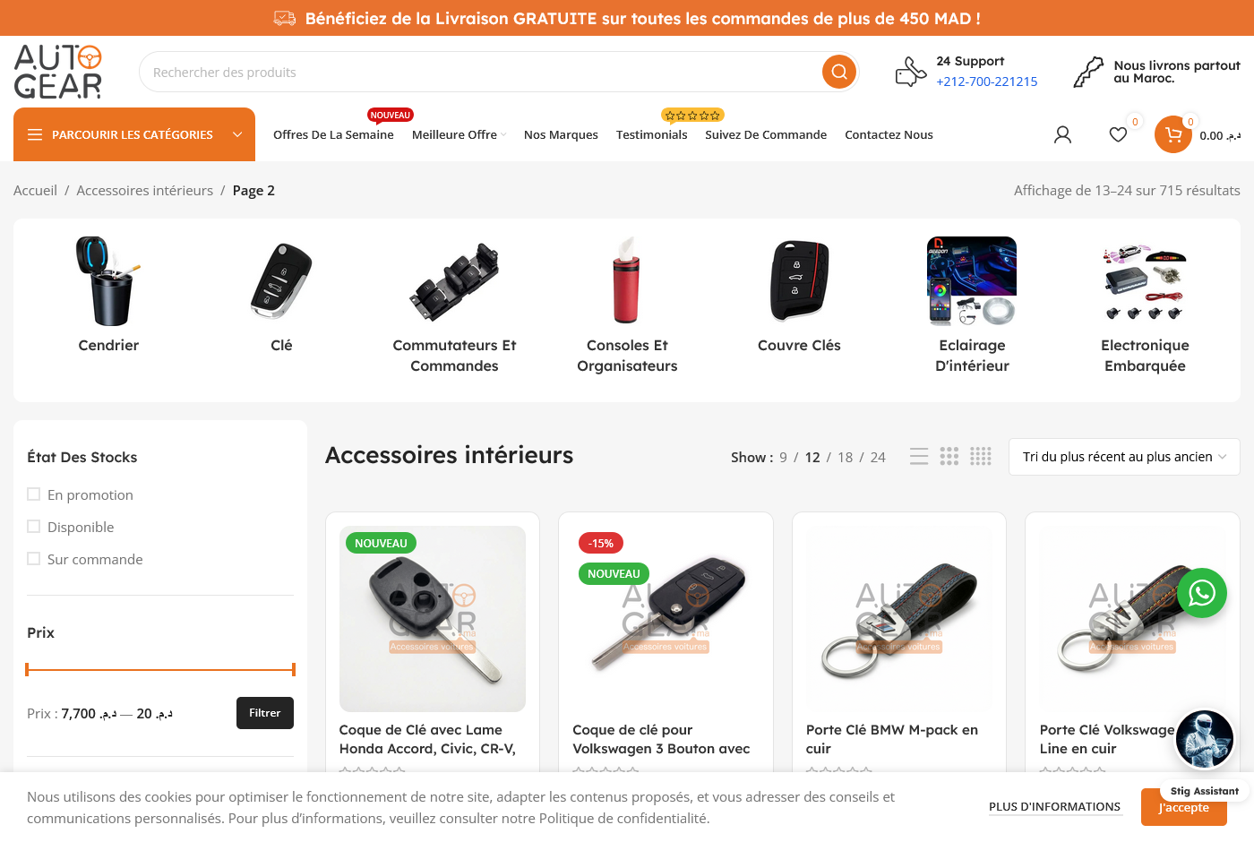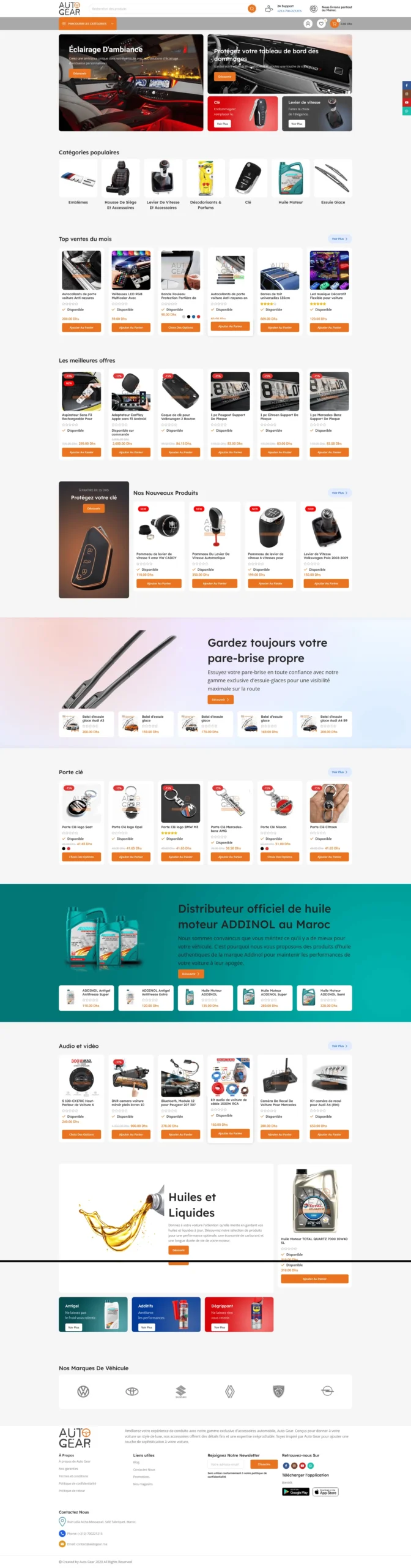 Autogear.ma is an online automotive accessories store based in Salé, Morocco, offering a wide range of vehicle products including car mats, steering wheel covers, phone holders, seat covers, Bluetooth kits, reversing radar systems, rims, tires, and other auto accessories for everyday driving and styling. The store serves customers across Rabat, Salé, Kénitra, and throughout Morocco, with delivery options and in-person pickup available at their workshop. Autogear.ma focuses on providing quality car accessories with clear pricing and product details, helping drivers enhance comfort, safety, and aesthetics on their vehicles — all from a convenient online catalogue.