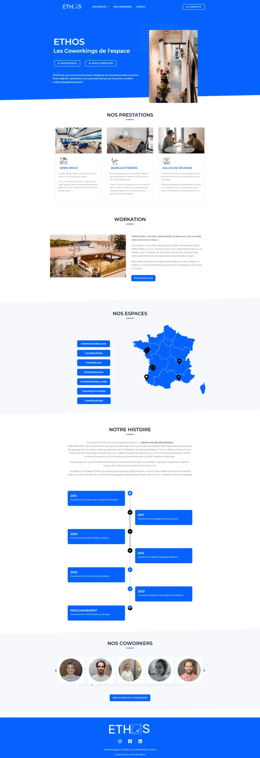 ETHOS Coworking is a community-focused network of coworking spaces located across several cities in France, including Bordeaux, Lyon, Bayonne, Port-de-Bouc, Nantes (La Noé), and Bordeaux Centre. The brand fosters collaborative work environments designed for freelancers, startups, and small teams, combining both open-plan desks and private offices with shared amenities such as meeting rooms and flexible workstations. ETHOS emphasizes meaningful professional interaction, mobility between locations, and a friendly community atmosphere where members can connect, work, and innovate together. The site showcases each location, workspace options, and contact details for enquiries and bookings, making it easy for visitors to explore coworking opportunities across multiple cities.