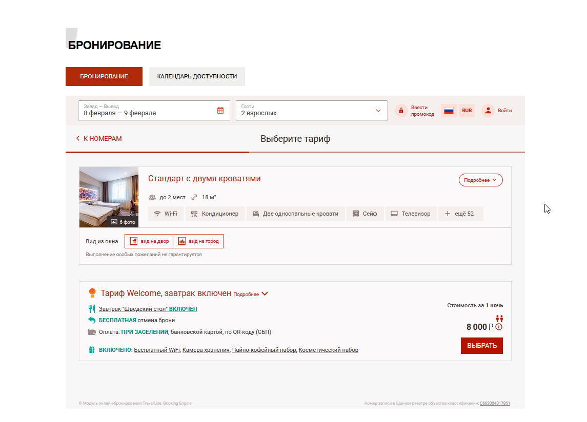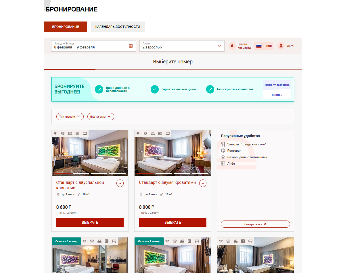 Room Selection & Booking Section
